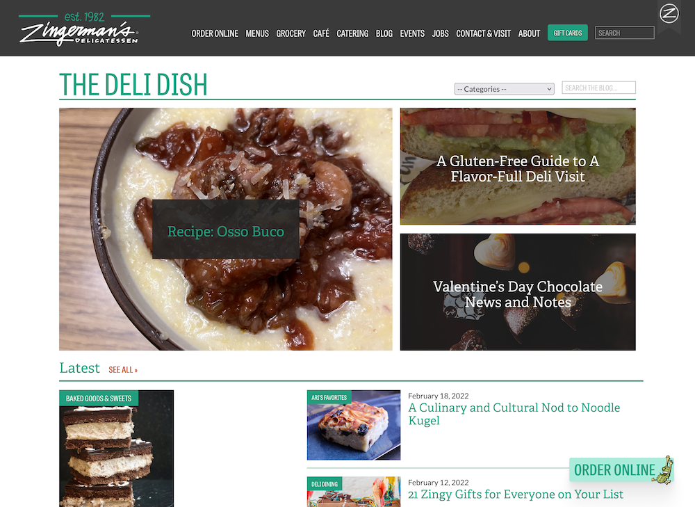 At the onset of the Covid-19 pandemic, the Zingerman’s businesses without online all pivoted to having online sales. To help guests find the new option, I created fun buttons on some of the businesses' websites. This is the one for the Deli, which we call Sparkle Pickle.